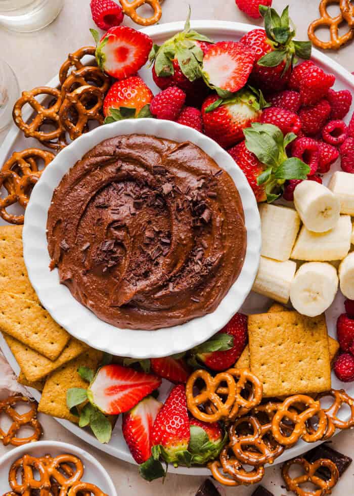 This Healthy Chocolate Hummus is a rich and indulgent way to satisfy your sweet tooth, but made with wholesome ingredients that you can feel good about eating! Serve with your favorite fruit, pretzels or graham crackers for the perfect fun dessert or snack! Want to save this recipe? Just enter your email and get it…